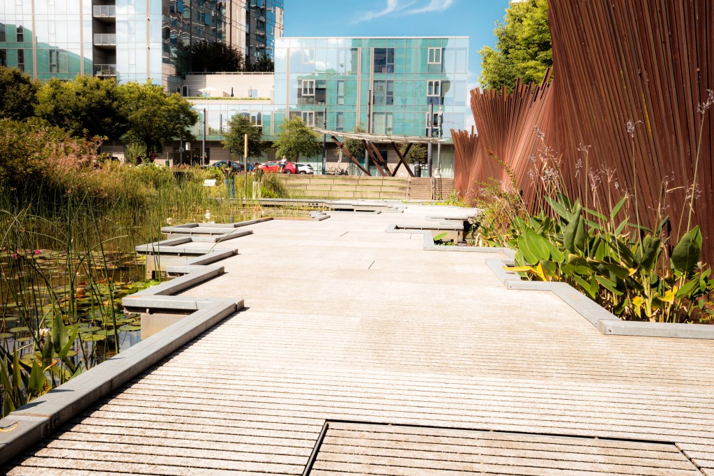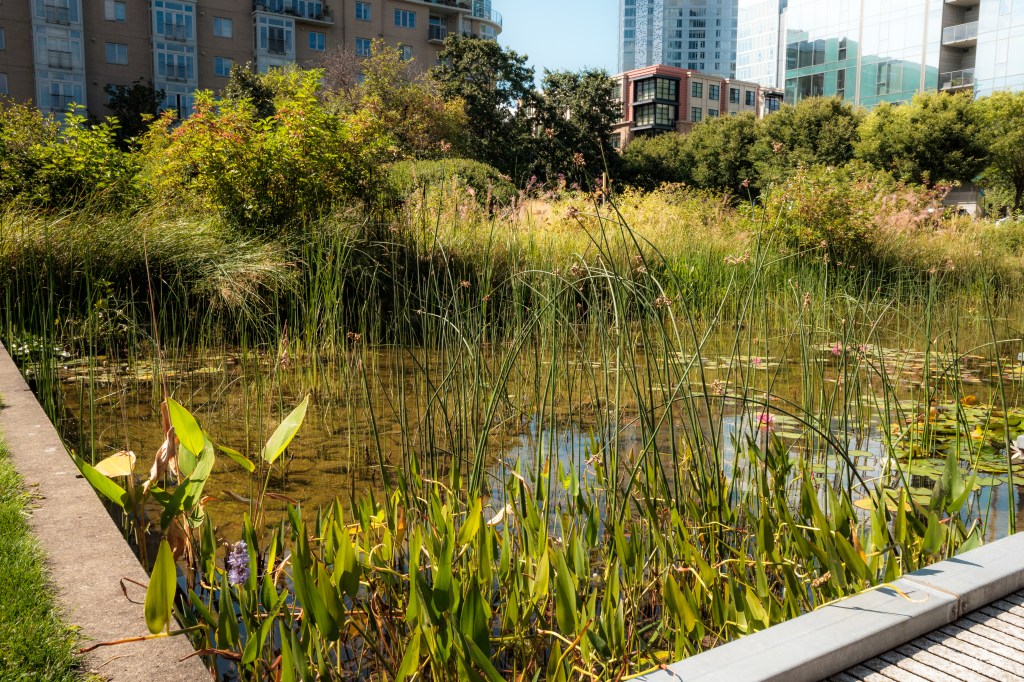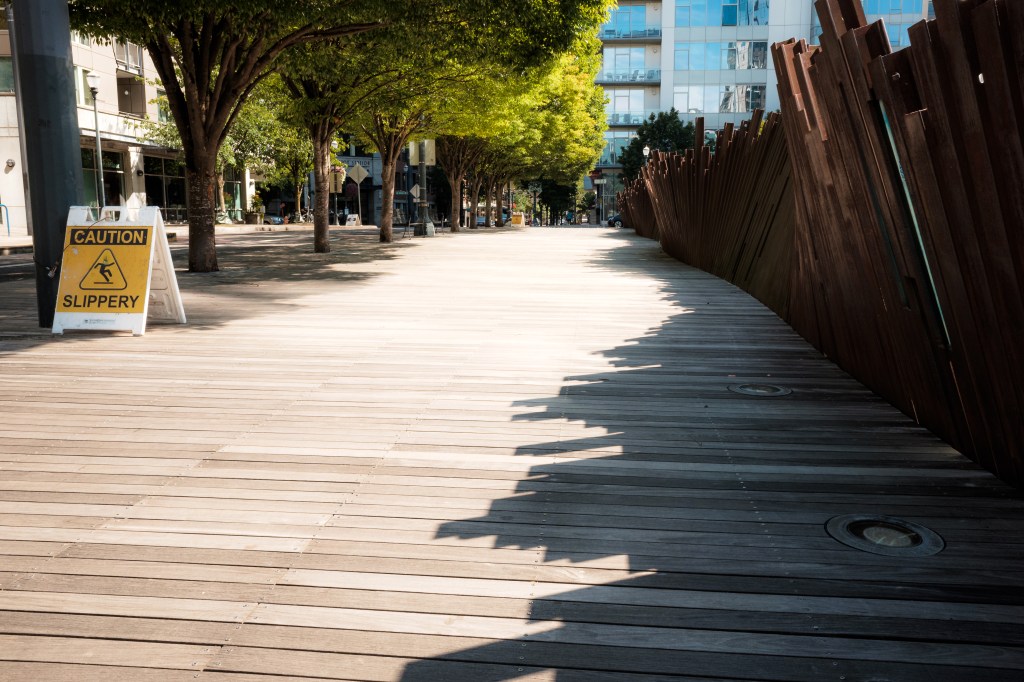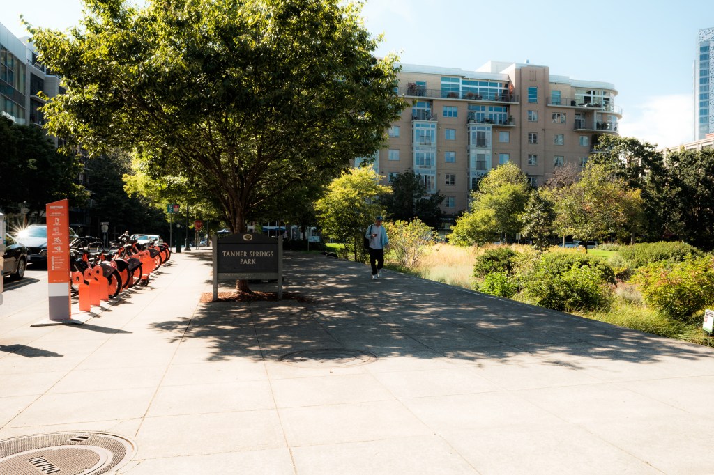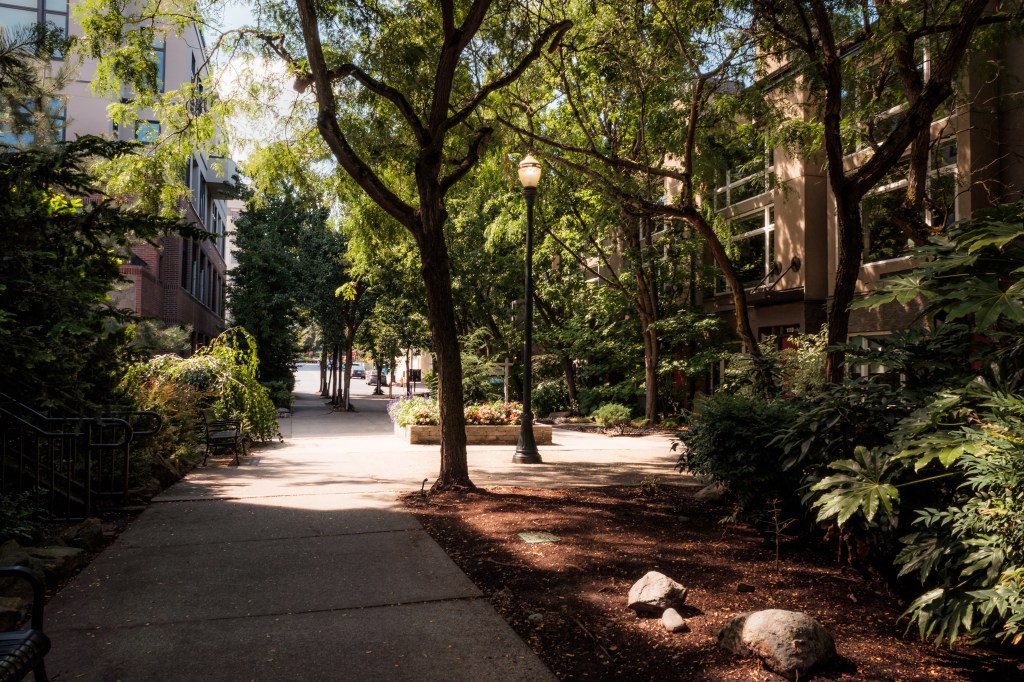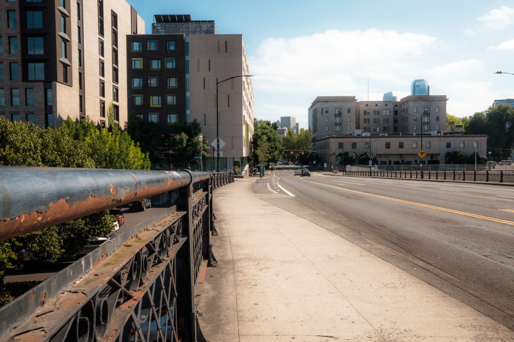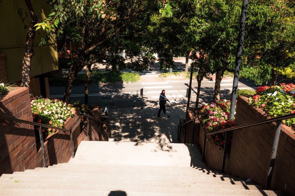 The Pearl District starting from Naito parkway. We pass by Union Station a couple of times. Some parks are explored: The Fields Park (under construction), Tanner Springs Park, and Jamison Square (is that a park?). There’s construction going on. And people just living their lives. Towards the end we make our way onto the Broadway Bridge ramps then back onto Naito via a pedestrian bridge.